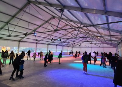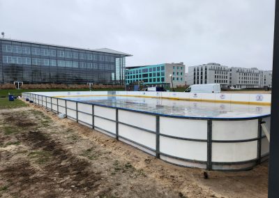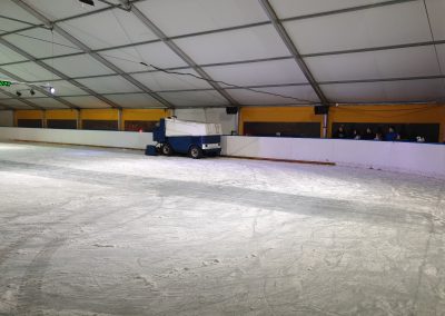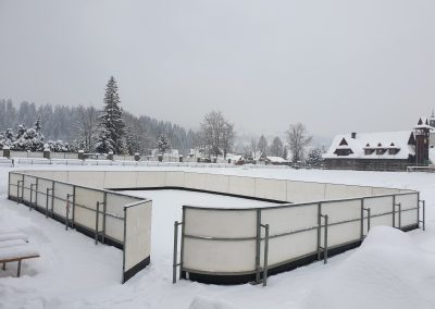 Lodowisko jest zasilane układem rur zgodnie z systemem Tichelmann’a, co gwarantuje efektywne chłodzenie lodowiska oraz jednolite warunki na całej powierzchni lodowej.