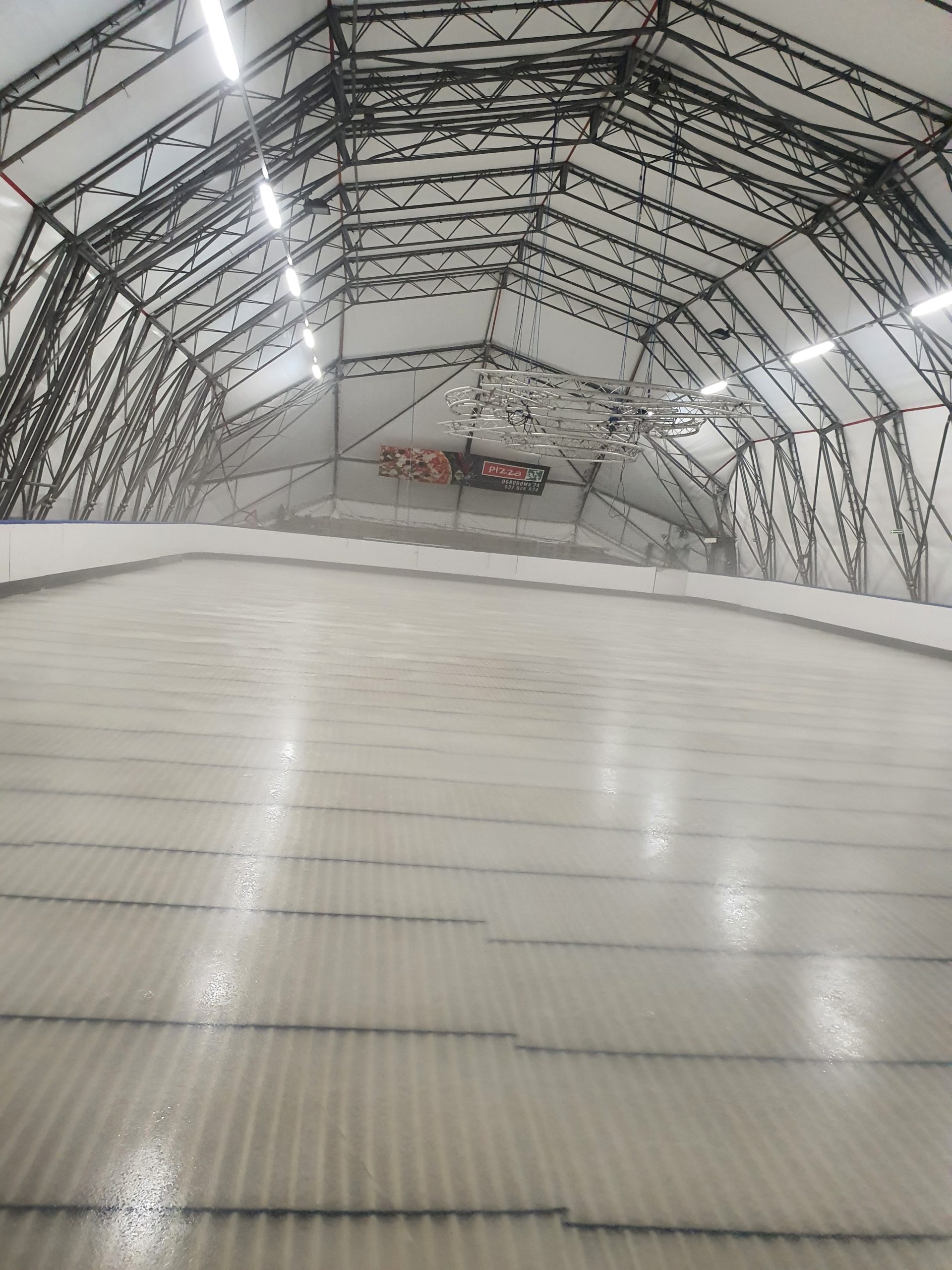 System mrożenia lodowiska opiera się na zastosowaniu rur polietylenowych, ułożonych równolegle między zbrojeniem płyty, jeszcze przed zalaniem tej ostatniej, na izolowanym podłożu z płyt styropianowych.