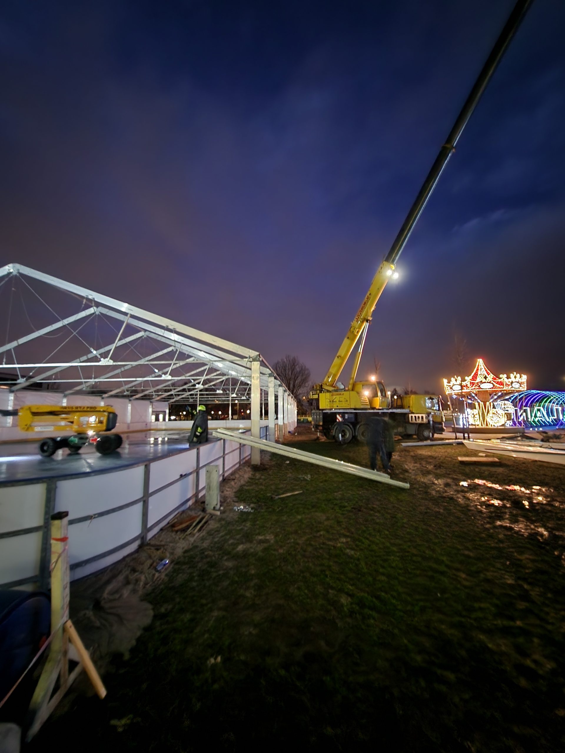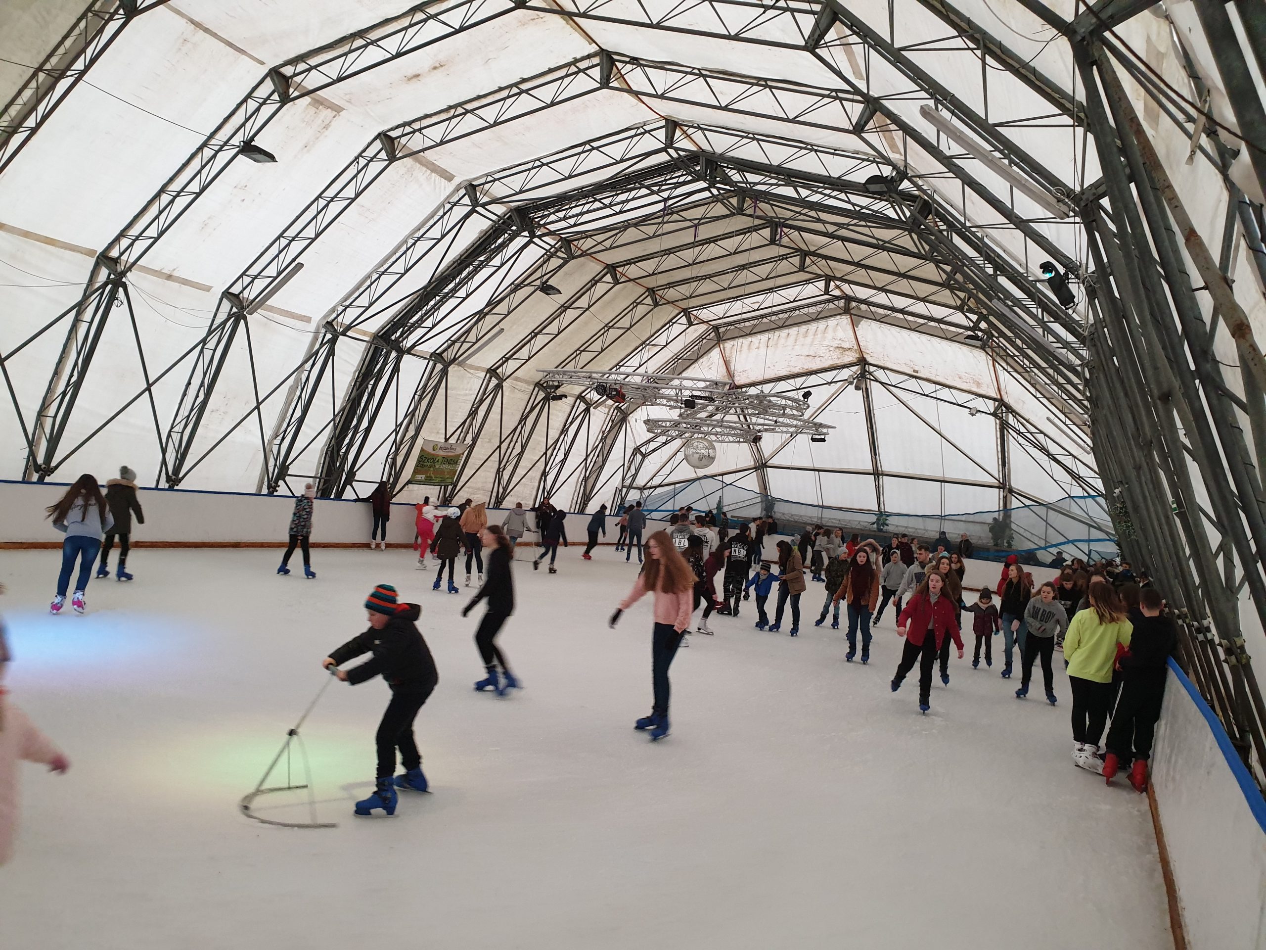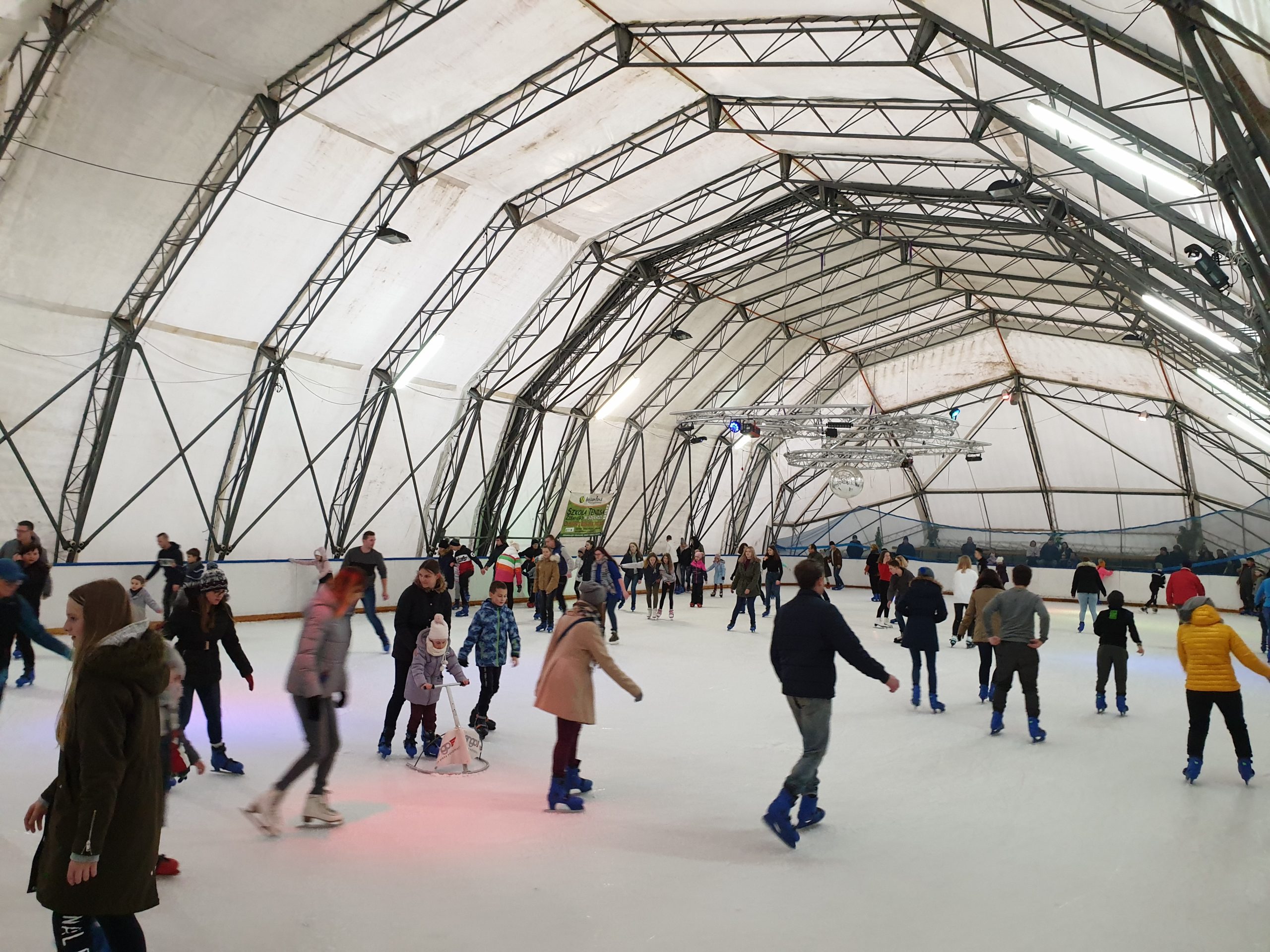 Konstrukcje hal namiotowych, pełniących funkcję zadaszenia lodowisk, są oparte na specjalnie wzmocnionych profilach aluminiowych, co nadaje im podwyższoną odporność na warunki atmosferyczne zimy.